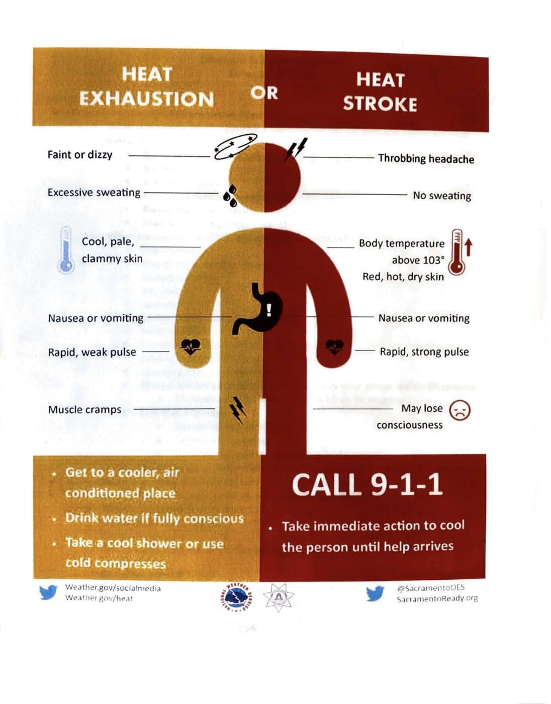 Information sheets from the CDC and weather.gov detailing signs of heat-related concerns are posted in the pavilion for staff to easily refer to during the summer.
