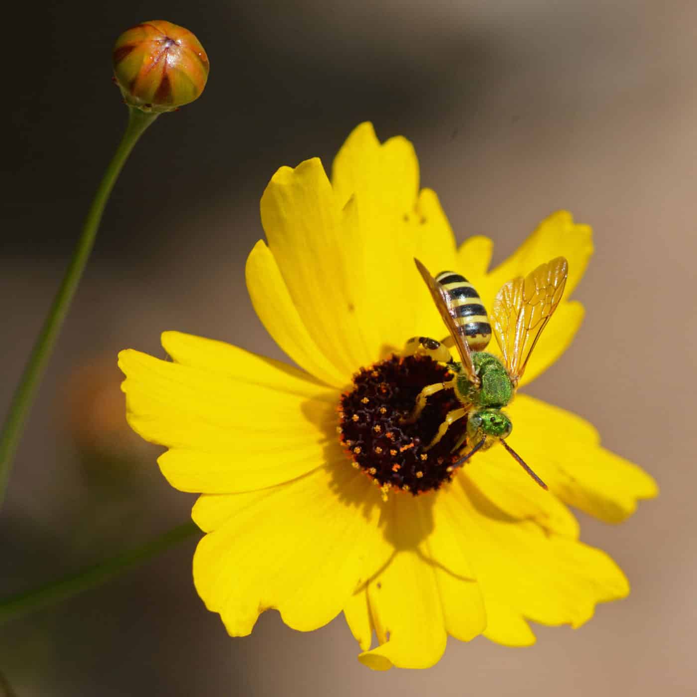 Florida’s state wildflower is Coreopsis, also known as tickseed, and refers to all 12 species native to Florida. Many of these occur only in North Florida and the Panhandle. The most common species, Leavenworth’s tickseed (Coreopsis leavenworthii), is almost entirely endemic to Florida — its only other occurrences are in two Alabama counties. It attracts many pollinators and is eaten by rabbits.