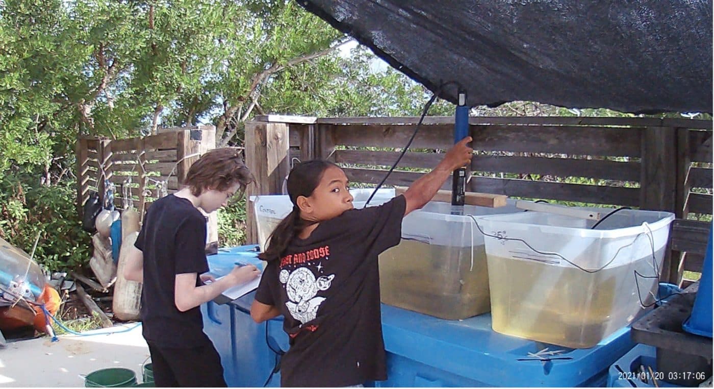The SCCF Marine Lab is hosting two Sanibel School 8th-grade science projects this semester. The school asked 8th graders to come up with projects that were relevant and possible to complete by the first of December. Two students chose to look at the effects of climate change on water quality and ecosystem changes.