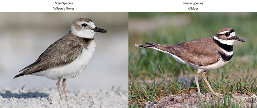 Killdeer also do not show significant differences between males and females, while Wilson’s plovers differ in appearance during breeding season, with the males’ breast bands being slightly darker and more prominent.
