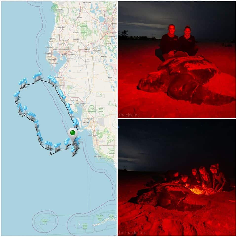 Also in 2020, the first leatherback was satellite tagged on the Gulf coast of Florida in partnership with Florida Leatherbacks, Inc. That leatherback was given the name “Juniper,” pictured at the top of this page and below.