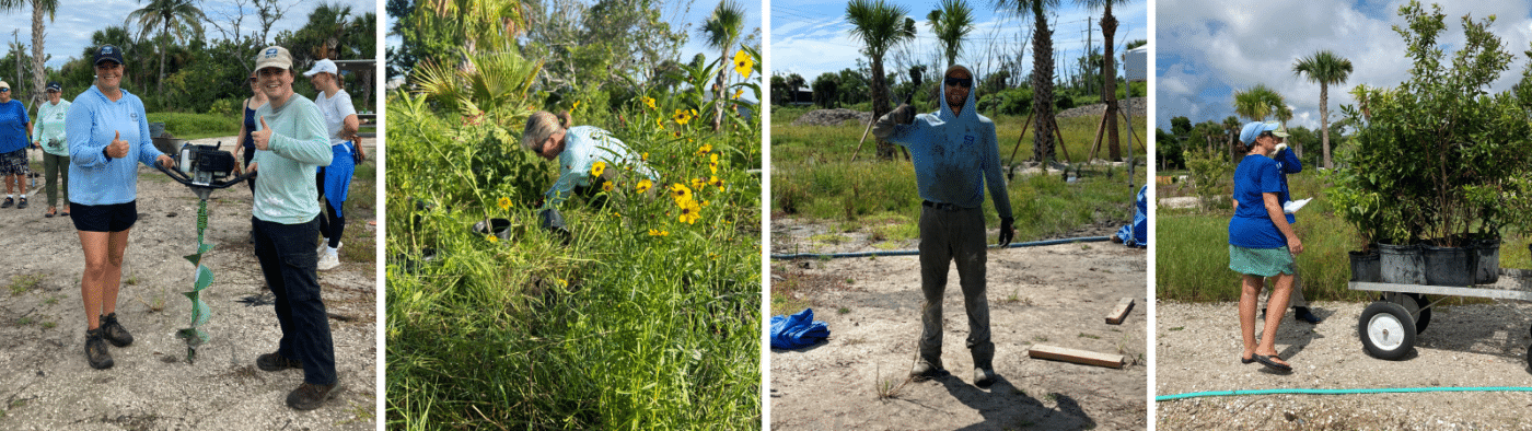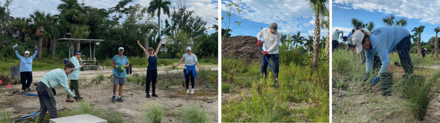 Last week, Coastal Watch hosted two days of volunteer plantings at our native plant pollinator garden at SCCF’s Puschel Preserve. This property, previously a Hurricane Ian debris staging site, is now on its way to becoming a beautiful community space. The front acreage will soon feature a welcome plaza, pollinator garden, walking/biking trail, sculpture garden, and demonstration marsh. We were thrilled to restore this preserve and bring it closer to public opening!