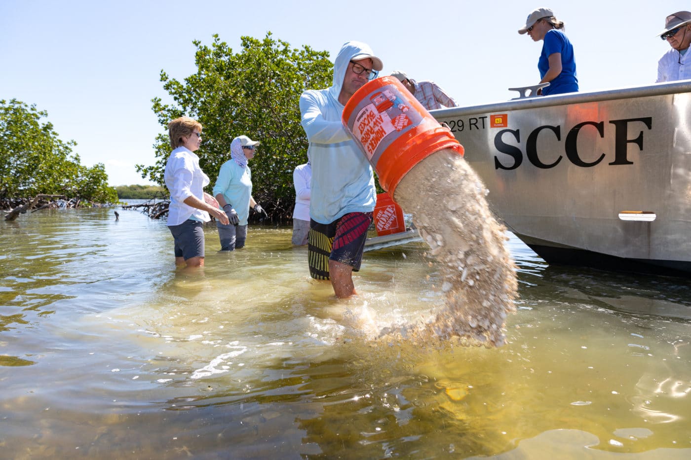 “It’s a great way for visitors to immerse in SCCF’s mission to protect and care for our coastal ecosystems,” said Pfau. “Planting mangrove seedlings and helping restore oyster reefs in our coastal areas alongside resident volunteers will deepen their connection to our islands.”
