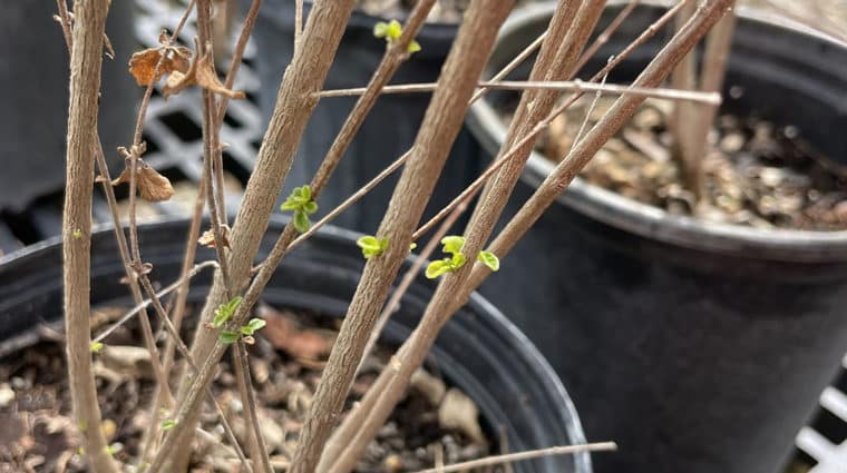 One simple way to tell if a plant is still alive is to perform the “scratch test” — lightly scratch the bark to get underneath the first outside layer. If you see a green, thin layer (called the cambium), the plant is still alive.