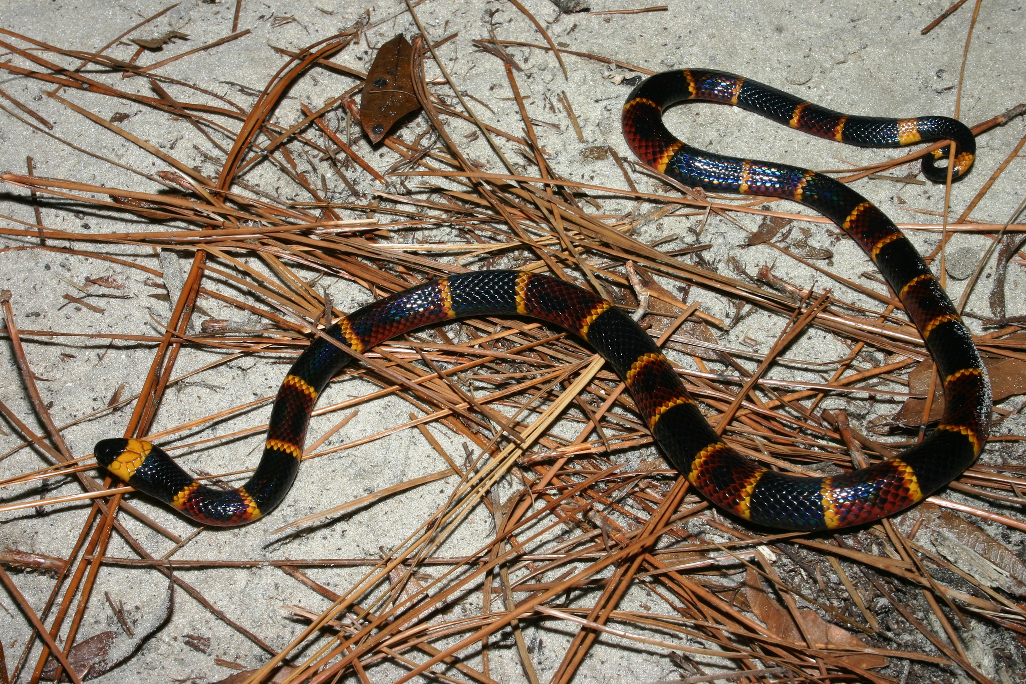 The scarlet kingsnake is one of the two tri-colored eastern coral snake (Micrurus fulvius) mimics in the state. The other mimic, the scarlet snake (Cemophora coccinea), is not found on Sanibel either but does exist throughout most of Florida.
