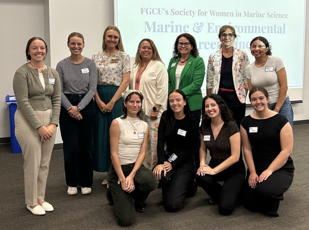 “As a woman in the marine science field, I am struggling with the thought of life after graduation and feeling overwhelmed by the uncertainty of the future. Hearing these women speak about their personal battles and how they came out on the other side, proud of their careers and of themselves, was incredible,” she said. “These ladies had amazing advice for our students at FGCU, and their words really resonated with me and the other executive members of SWMS.”